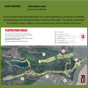 Guest Speakers Chris & Rene Creed, Living Life on 2 Wheels; Jacque Knight, CMT; Gina Otto, Trailnet